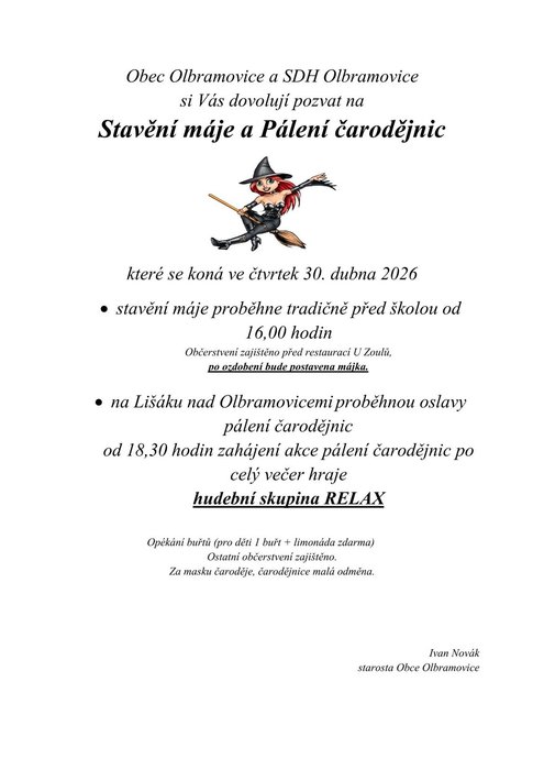 Úvod > Informace > Aktuality > Pozvánka na stavění máje a pálení čarodějnic